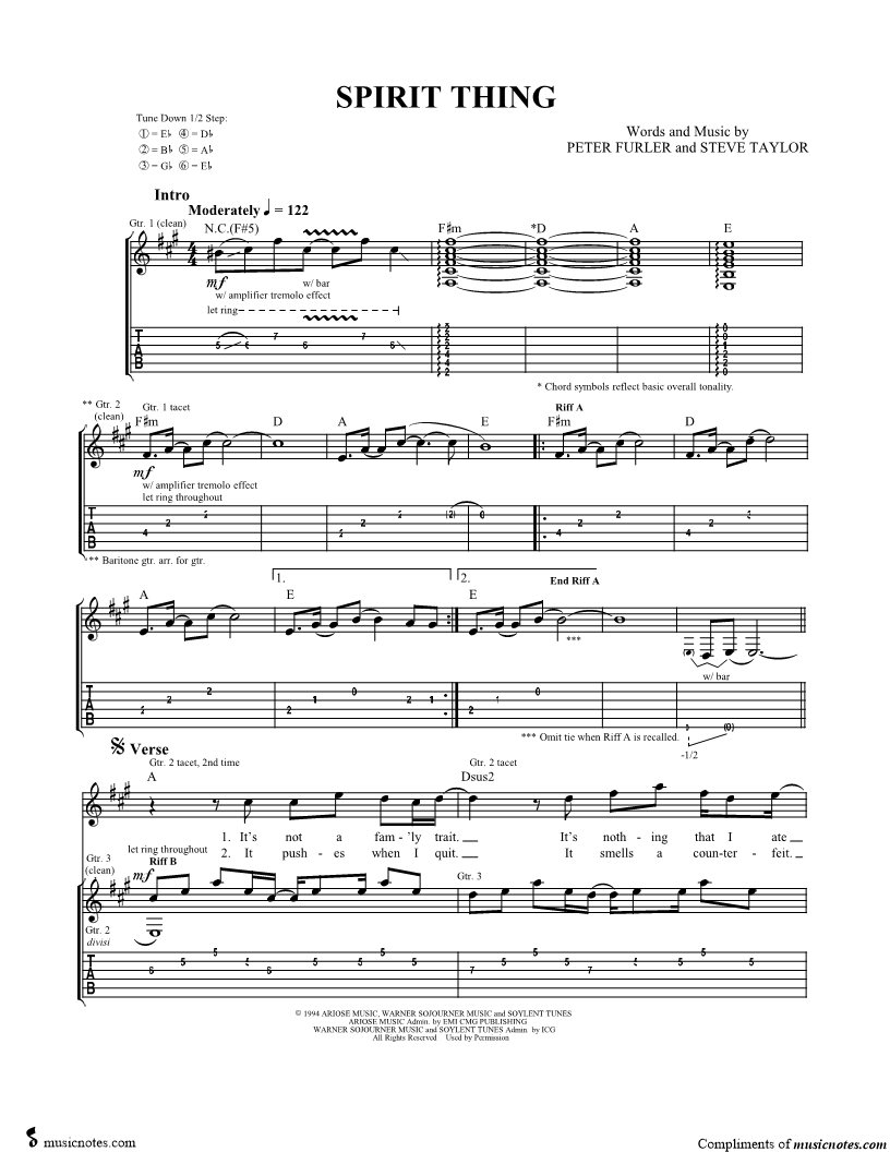 Voice, range: E4-C#6 Guitar 1 Guitar 2 Guitar 3 Guitar 4 Guitar 5 Backup Vocals | |