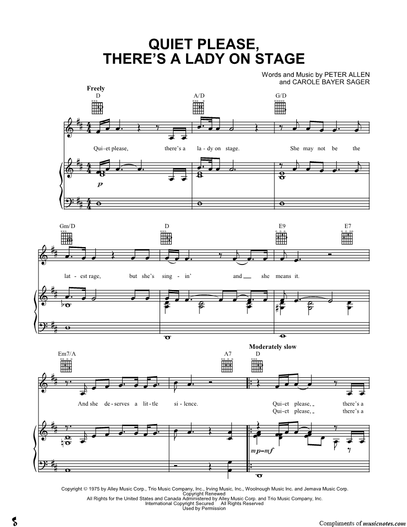 Musicnotes sells a wide variety of digital sheet music products including Singer Pros, Beginner Notes, Choral music, Piano Solos, Lead Sheets, Piano/Vocal/Guitar, Solo and Accompaniment, and fretted instrument tablature.