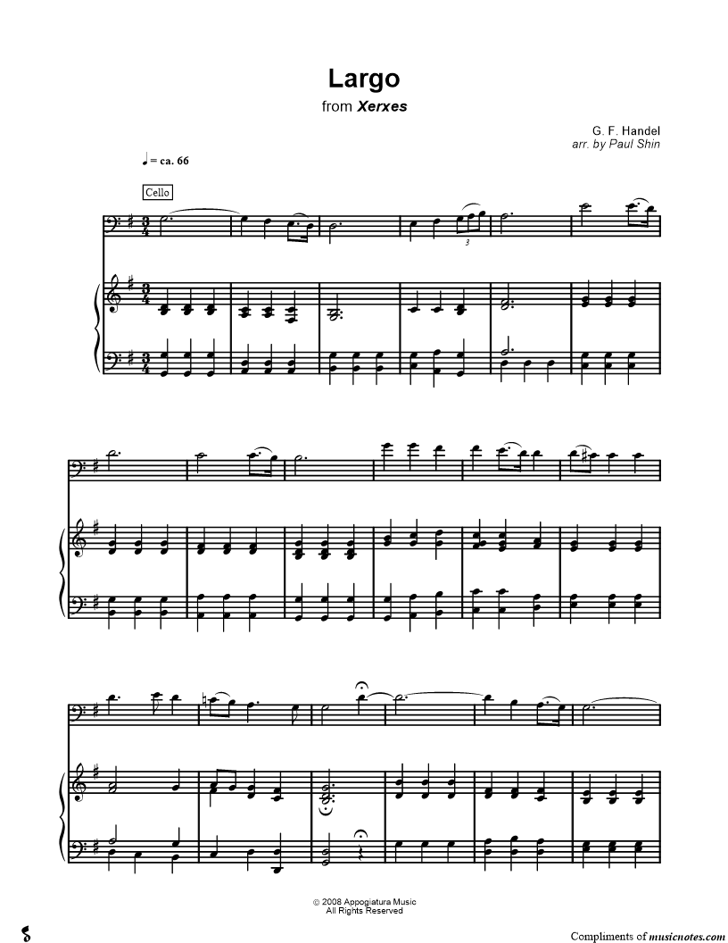 Largo from Xerxes - Piano Accompaniment |
