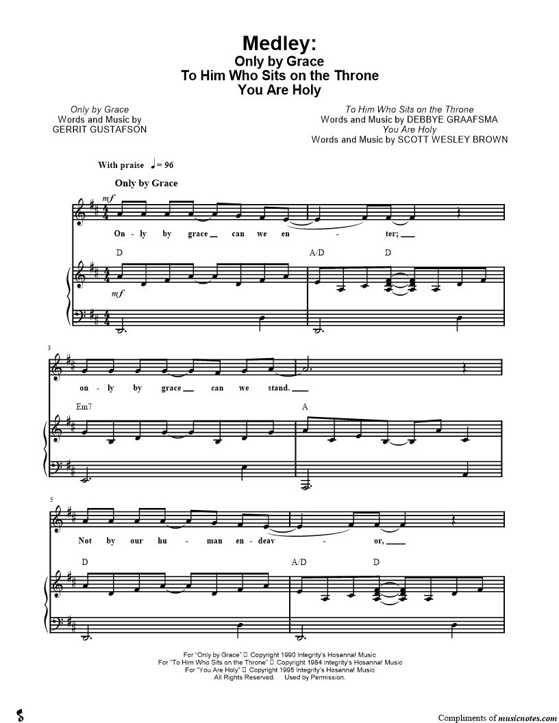 Medley: Only by Grace, To Him Who Sits on the Throne, You are Holy |