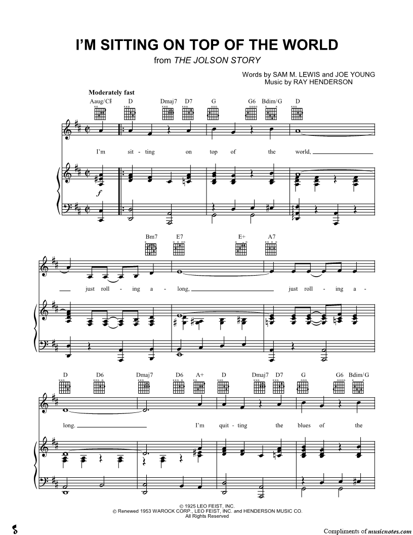 I'm sitting on top of the world, just rolling along, just rolling along. |