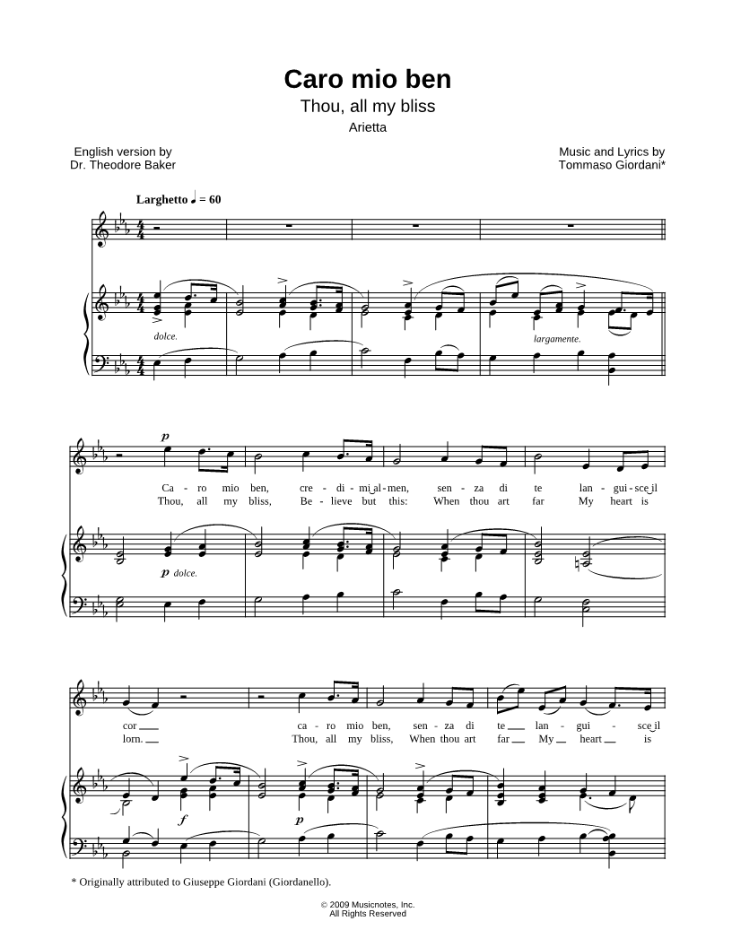 Caro mio ben, credimi ualmen, senza di te languisce |
