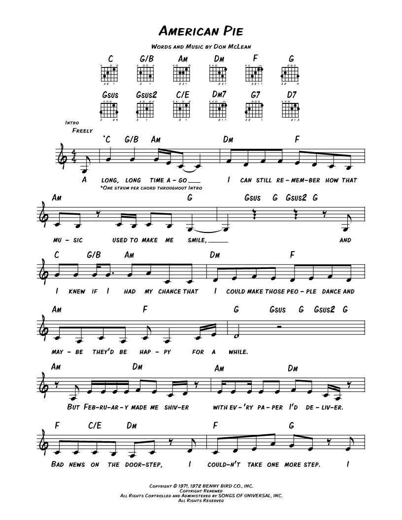 A long, long time ago I can still remember how that music used to make me smile, and I knew if I had my chance that I could make those people dance and maybe they'd be happy for a while. |