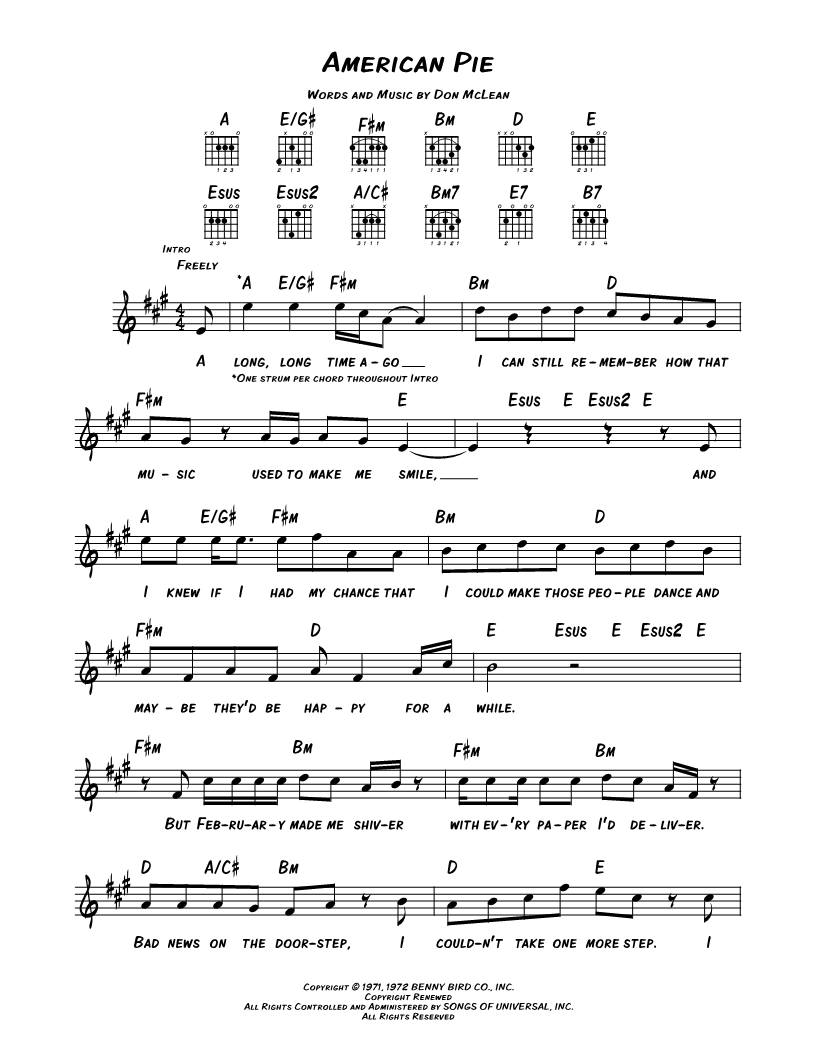 A long, long time ago I can still remember how that music used to make me smile, and I knew if I had my chance that I could make those people dance and maybe they'd be happy for a while. |