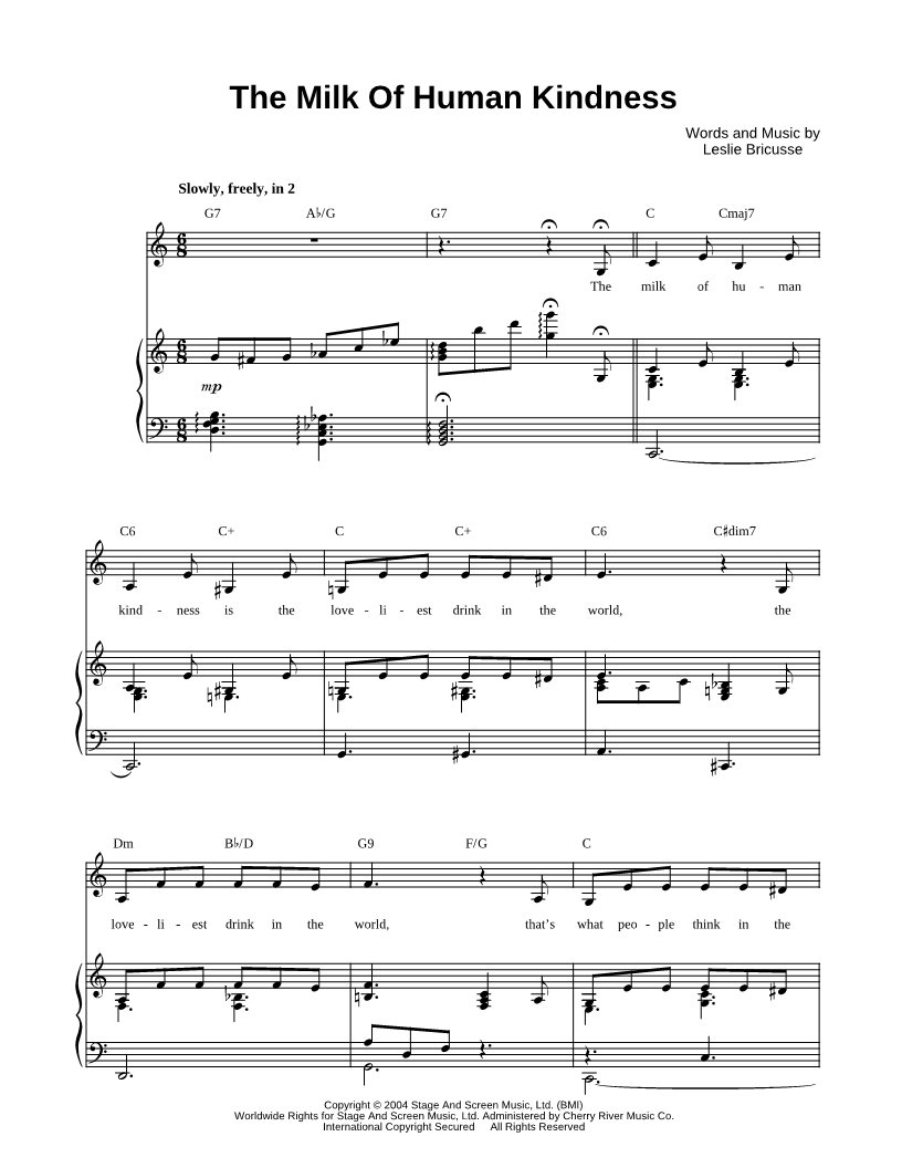The milk of human kindness is the loveliest drink in the world, the loveliest drink in the world, that's what people think in the world, |