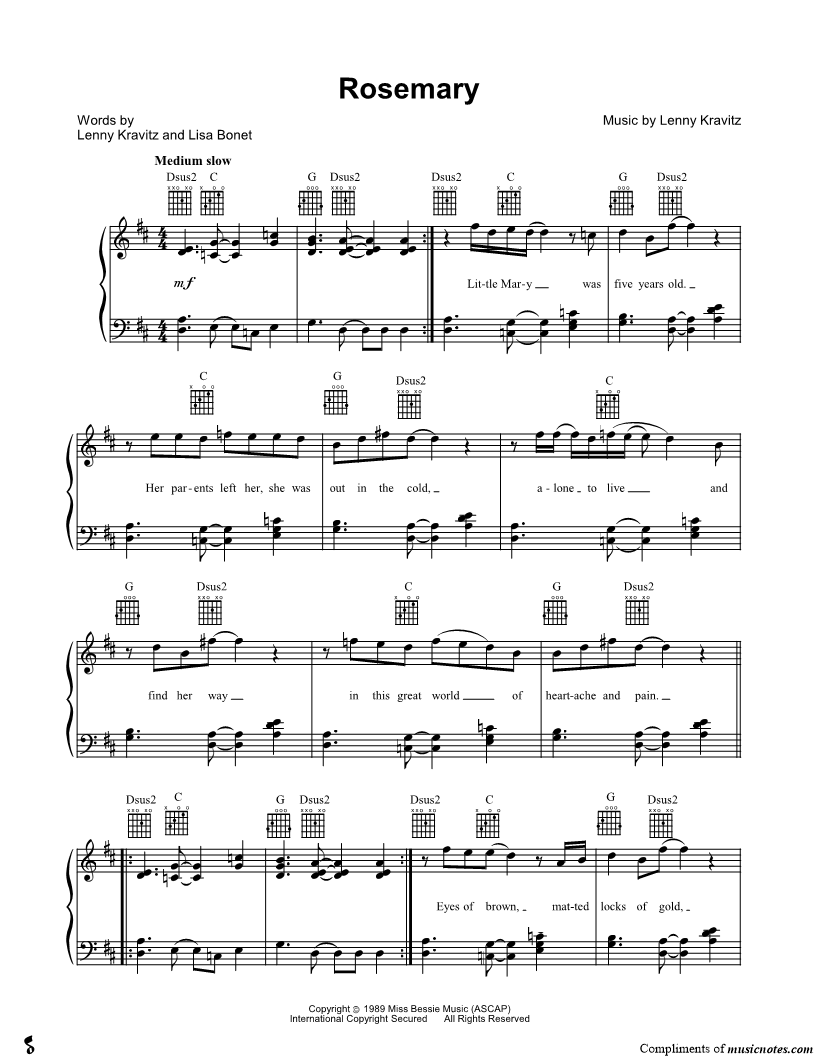 Musicnotes sells a wide variety of digital sheet music products including Singer Pros, Beginner Notes, Choral music, Piano Solos, Lead Sheets, Piano/Vocal/Guitar, Solo and Accompaniment, and fretted instrument tablature.