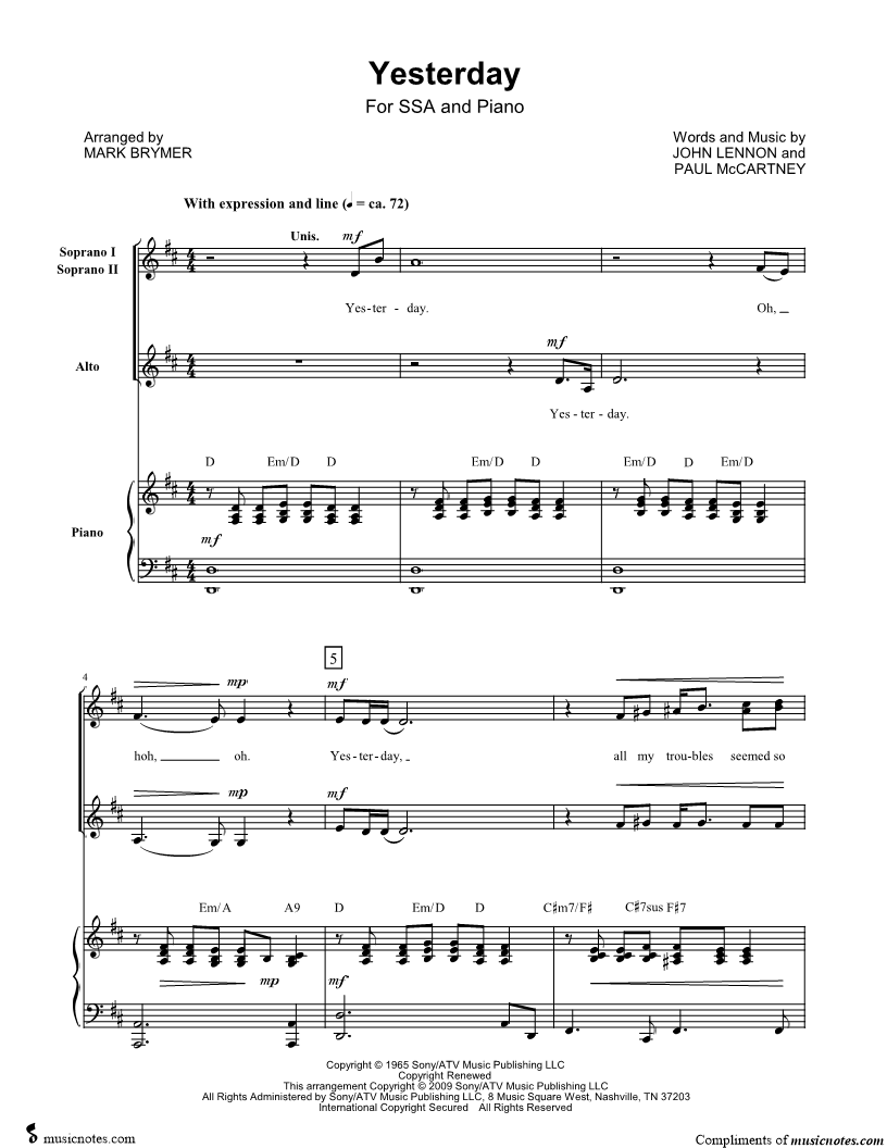 Soprano Voice 1, range: B3-F5 Soprano Voice 2 Alto Voice, range: G3-C5 Piano Accompaniment SSA Choir | |