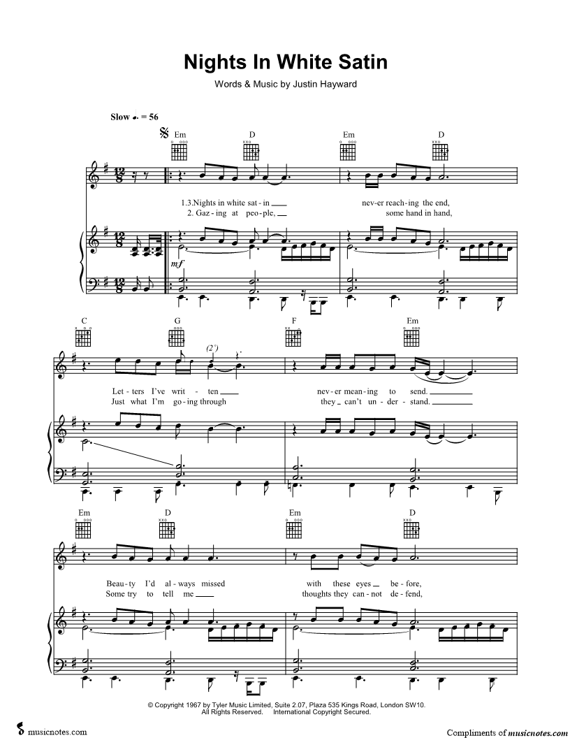 Nights in white satin never reaching the end, |