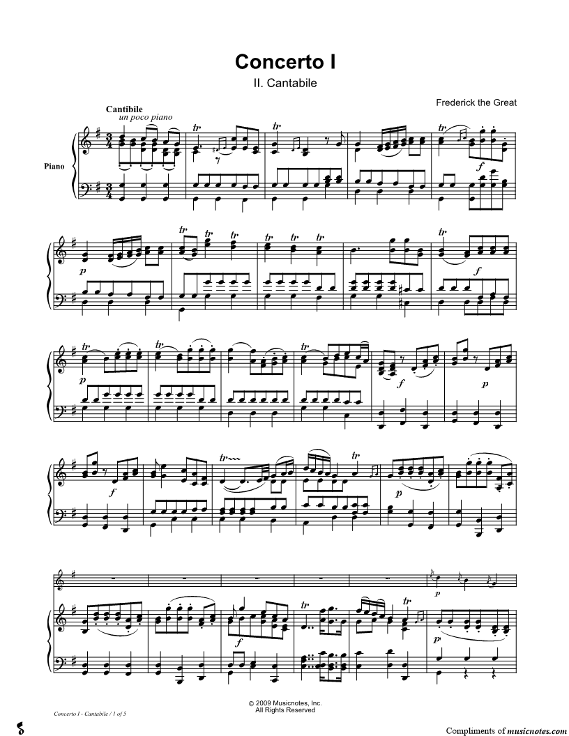 Concerto for Flute No. I in G: II. Cantabile - Piano Accompaniment |