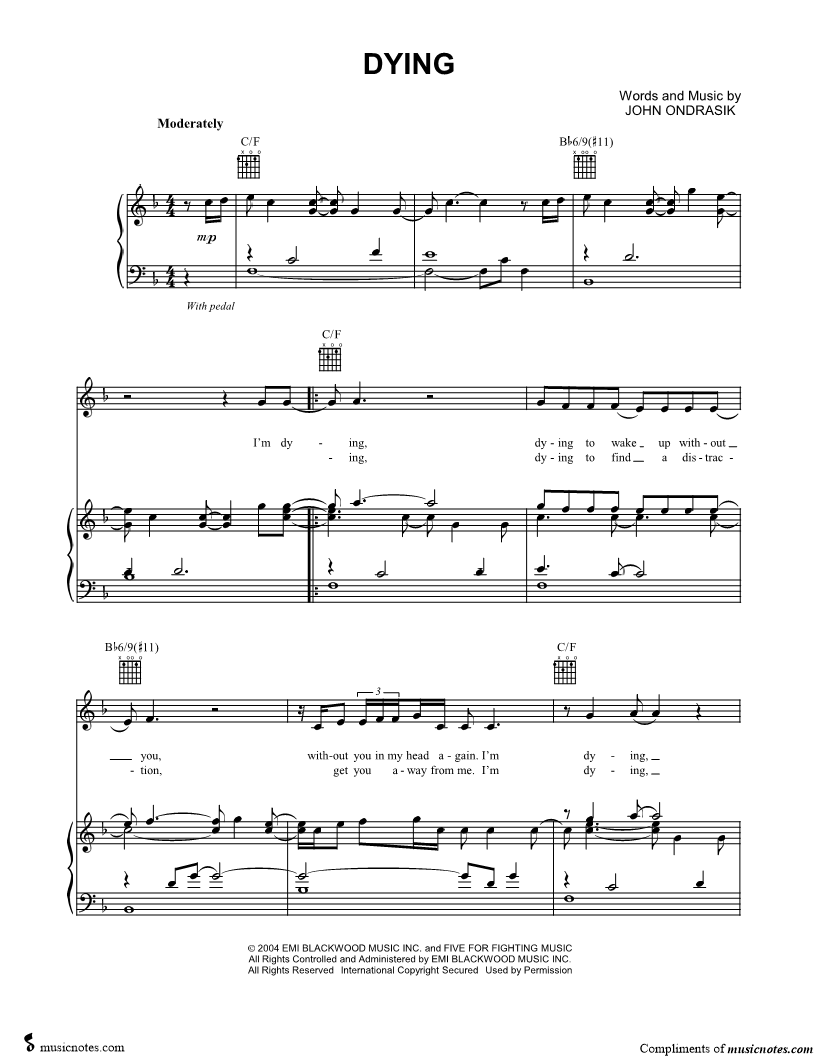 I'm dying, dying to wake up without you, without you in my head again. |