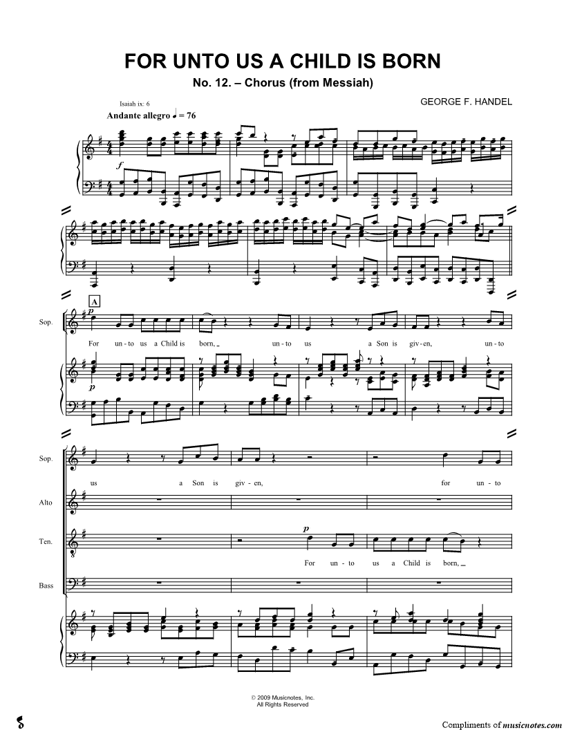 For unto us a Child is born, unto us a Son is given, unto us a Son is given, for unto us a Child is born and the government shall be upon His shoulder; upon His shoulder; and His Name shall be called Wonderful, |