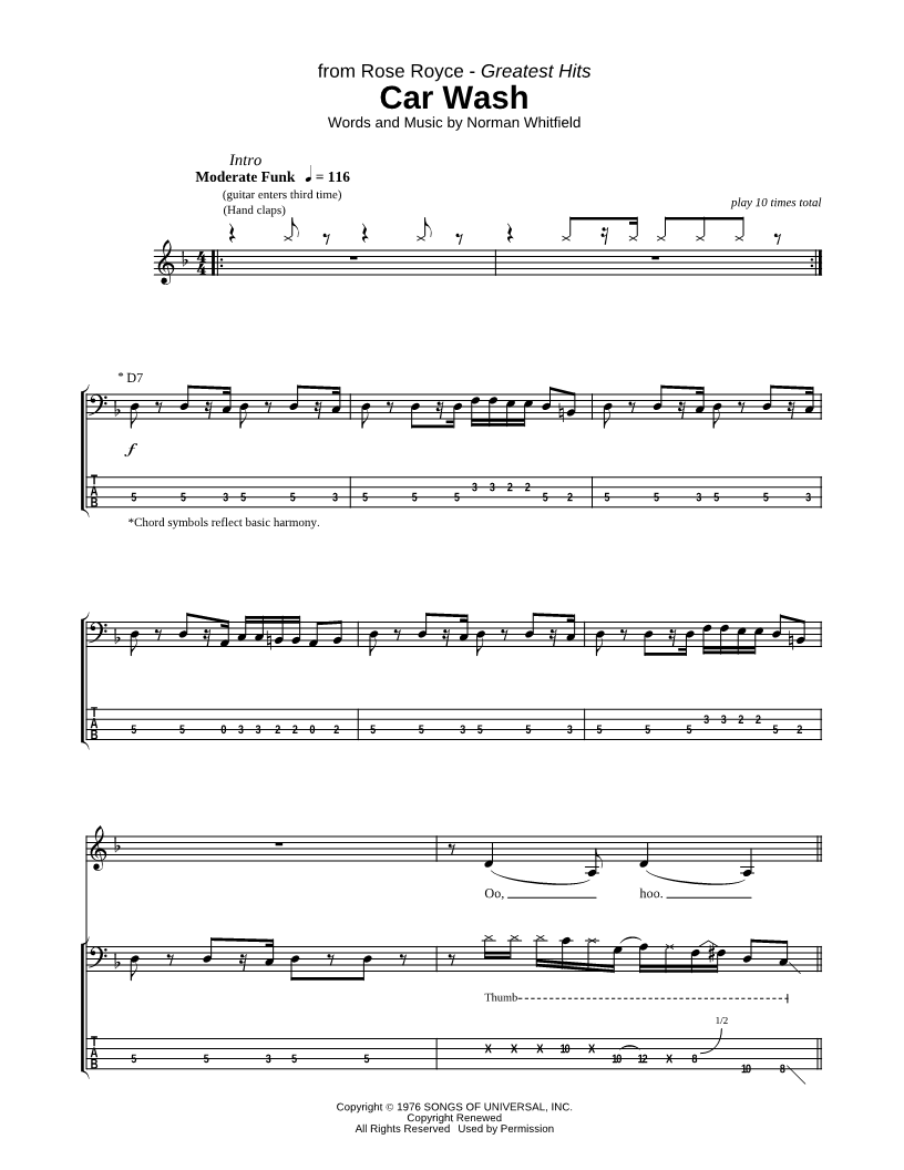 Bass Tab Bass/Vocal |