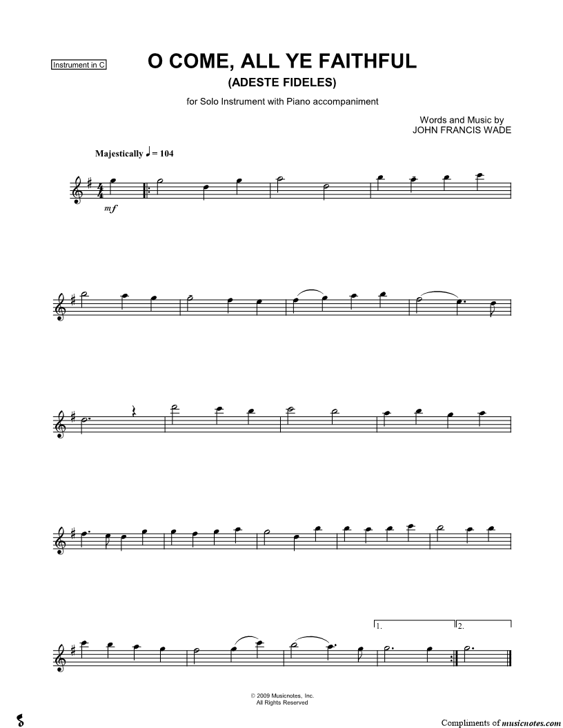 O Come, All Ye Faithful - C Instrument |