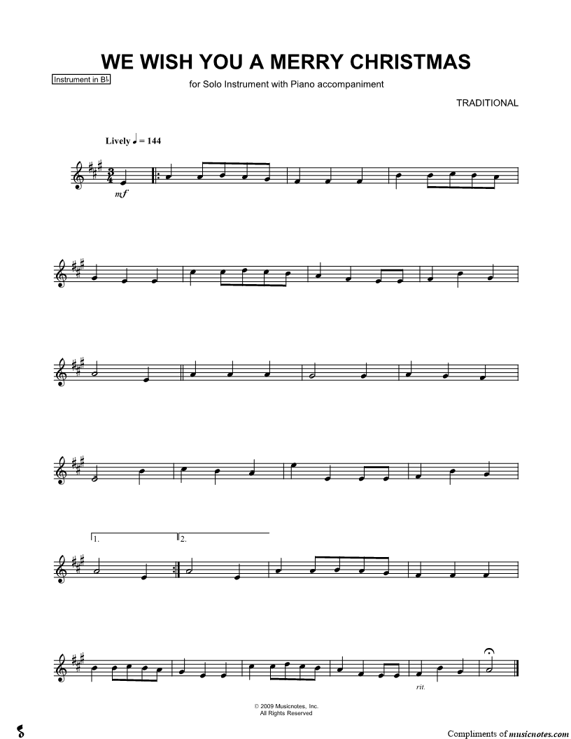 We Wish You a Merry Christmas - Bb Instrument |
