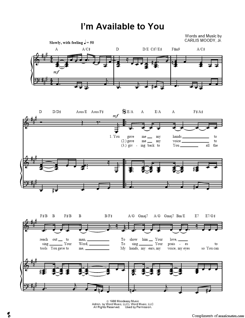 Many of the arrangements on Musicnotes have transpositions available, typically in C Major, as well as 3 sharps and 3 flats. If you do not see your desired key, you can request a transposition by reaching out to Customer Support.