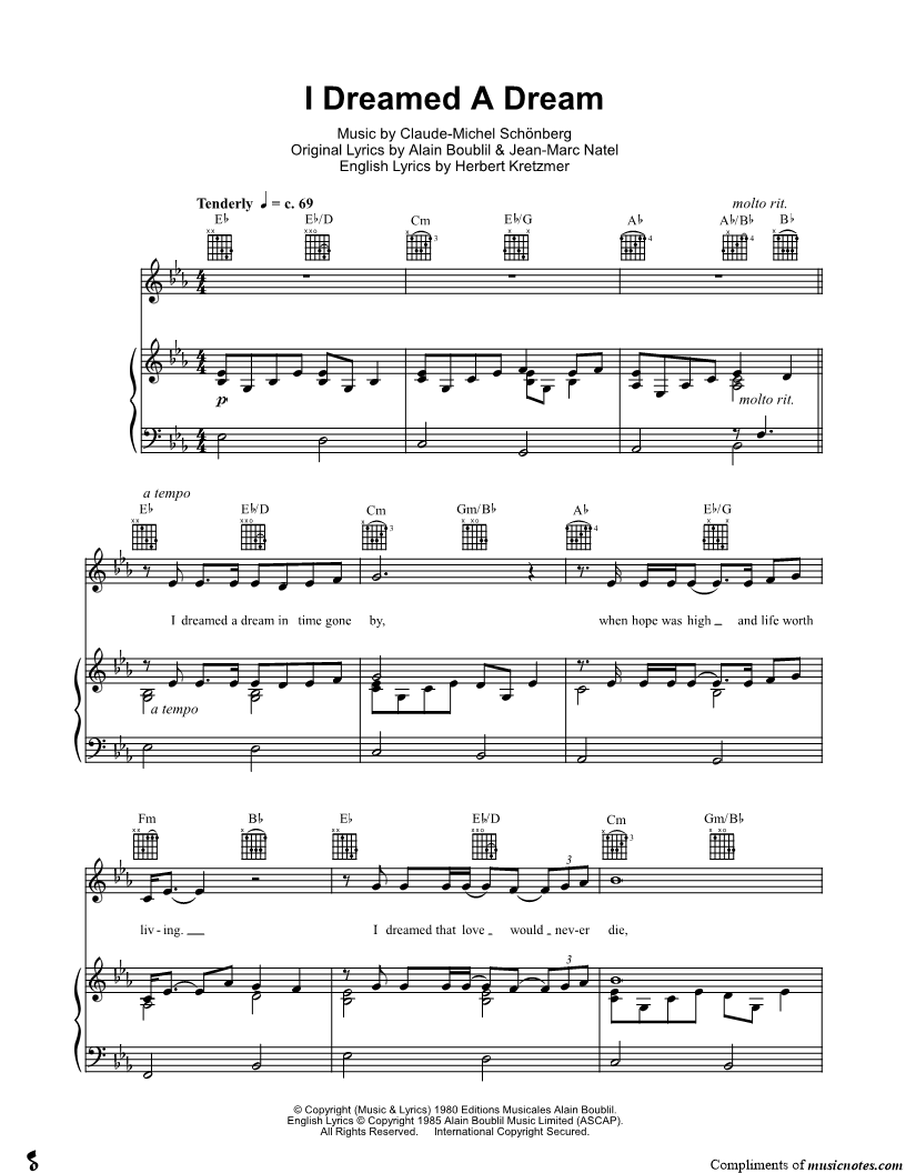 I dreamed a dream in time gone by, when hope was high and life worth living. |