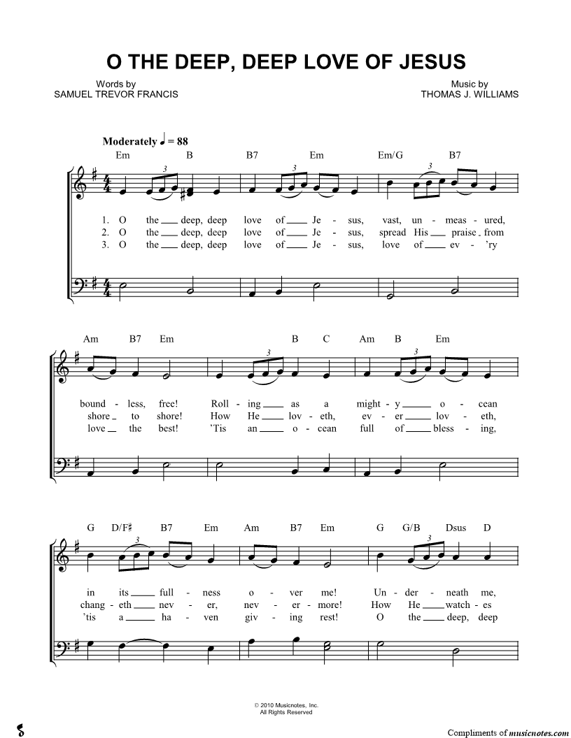 O the deep, deep love of Jesus, vast, unmeasured, boundless, free! |