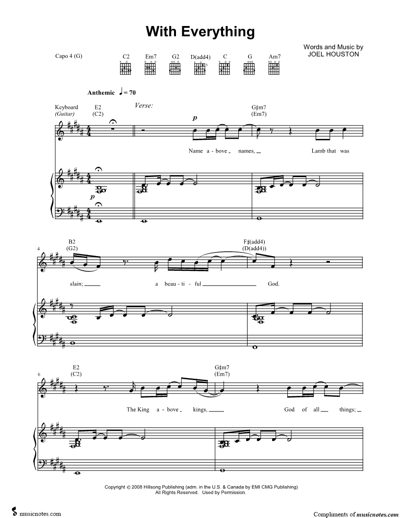 Many of the arrangements on Musicnotes have transpositions available, typically in C Major, as well as 3 sharps and 3 flats. If you do not see your desired key, you can request a transposition by reaching out to Customer Support.