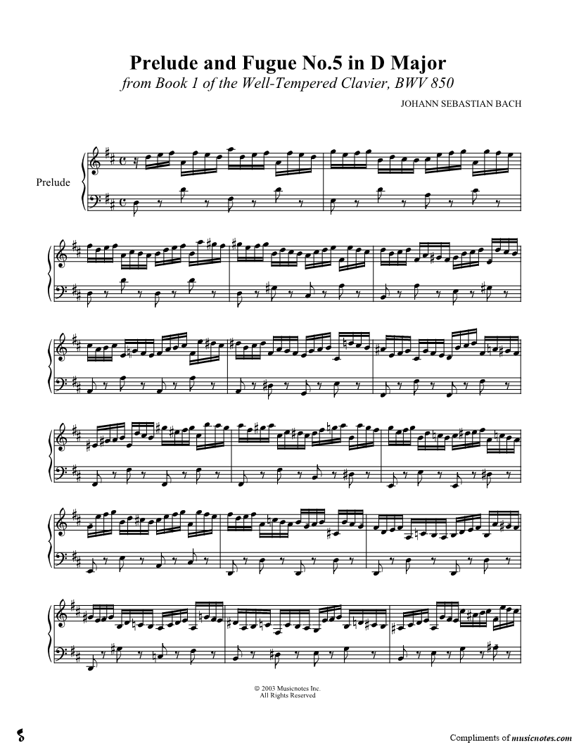 Prelude and Fugue No.5 in D Major, BWV 850 |