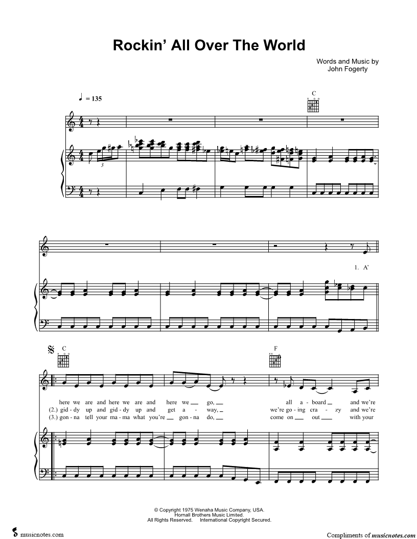 A' here we are and here we are and here we go, all aboard and we're hitting the road, here we go, rocking all over the world. |