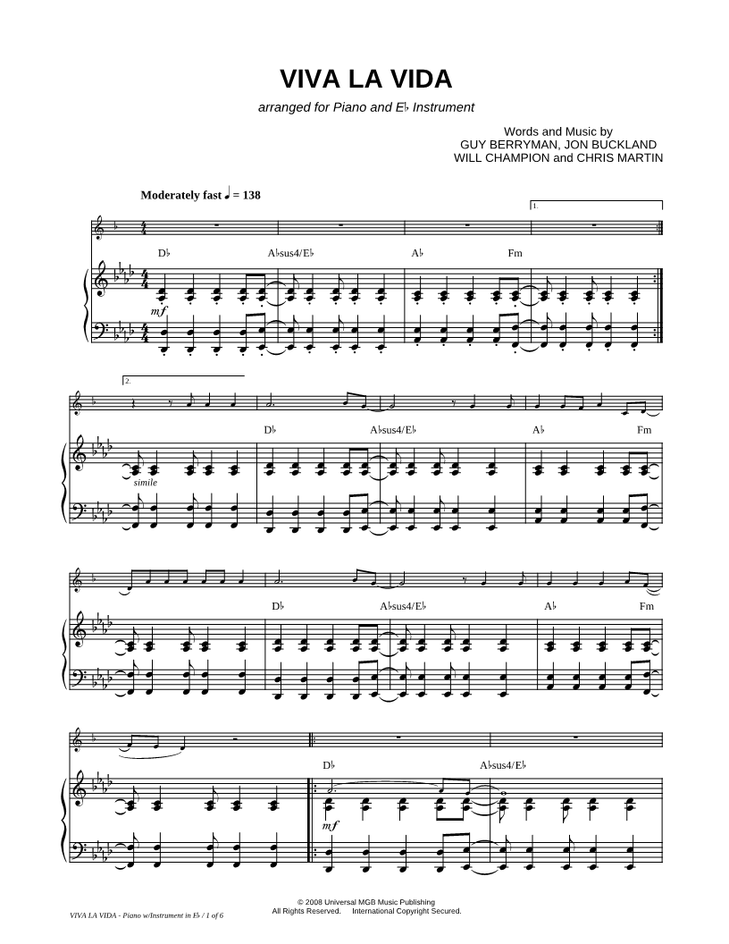 Viva la Vida - Piano Accompaniment (Eb Instrument) |
