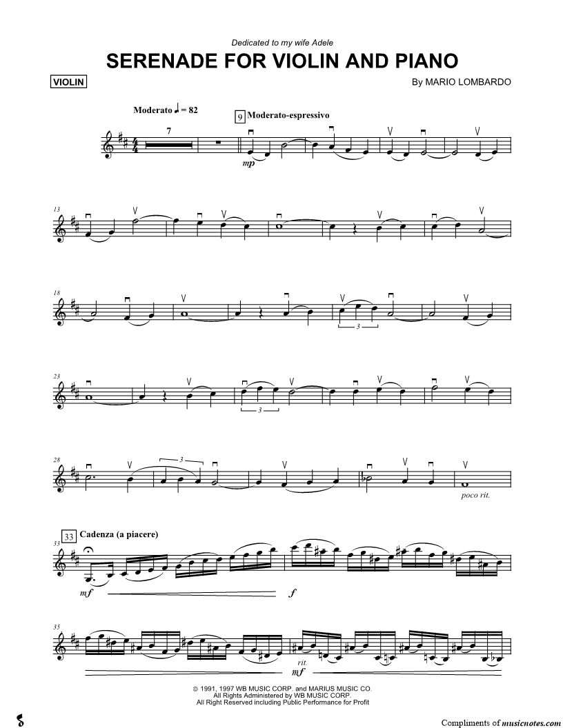Serenade for Violin and Piano - Violin Part |