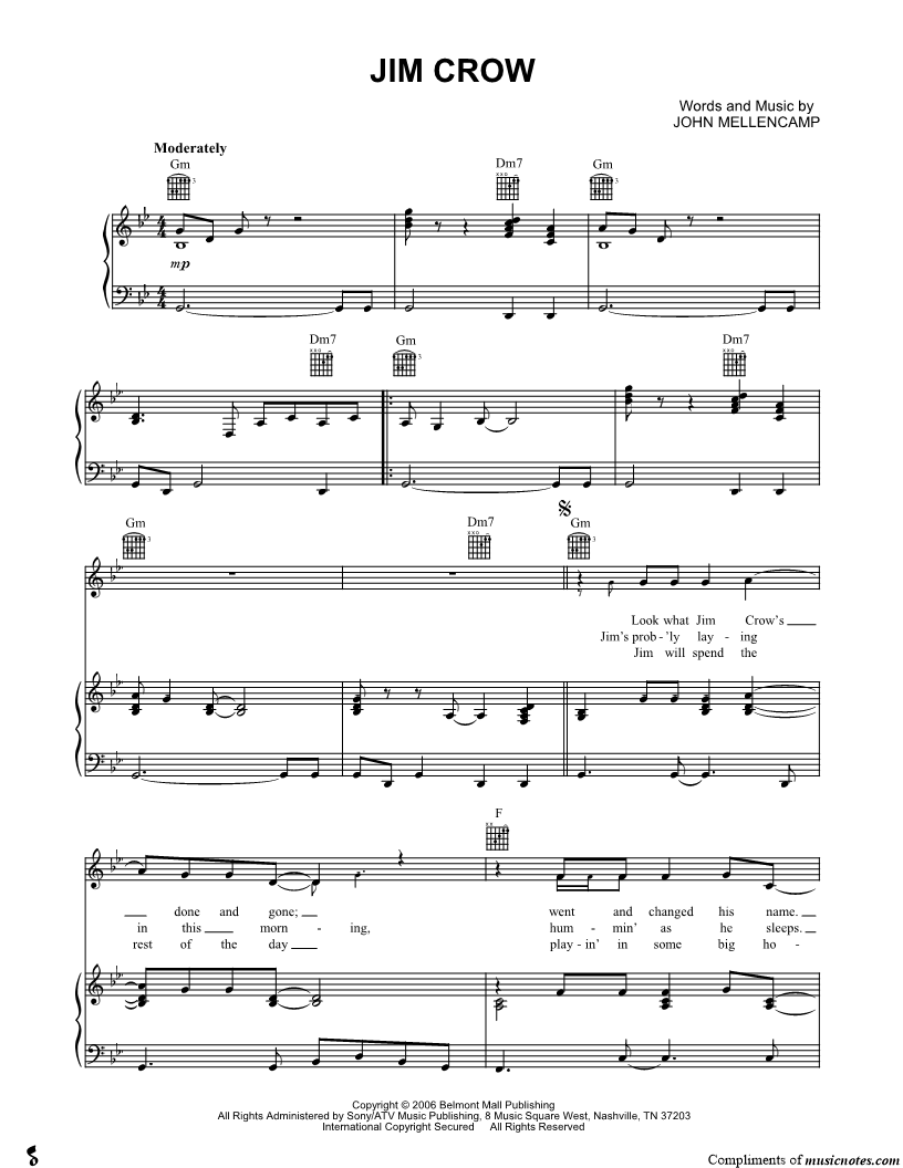 Look what Jim Crow's done and gone; went and changed his name. |
