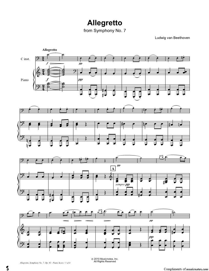 Allegretto from Symphony No. 7 - Piano Accompaniment (Bass Clef Instrument) |