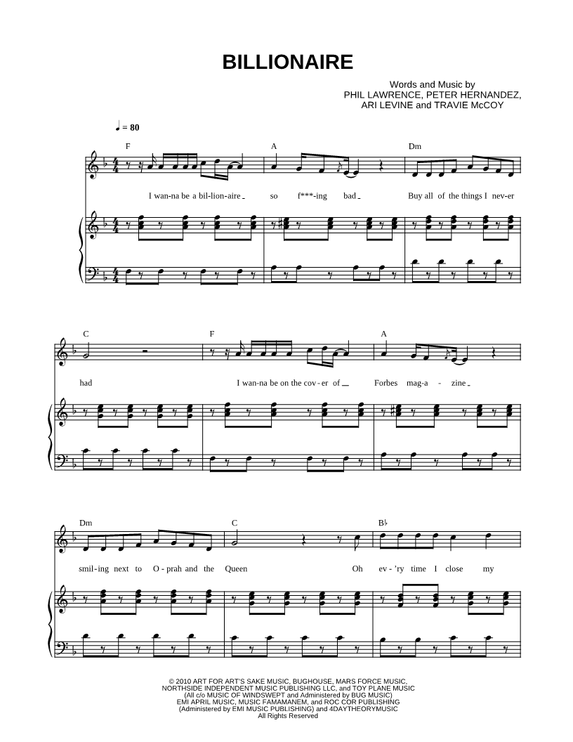 I wanna be a billionaire so f***ing bad Buy all of the things I never had I wanna be on the cover of Forbes magazine smiling next to Oprah and the Queen Oh ev'ry time I close my eyes I see my name in shining lights |