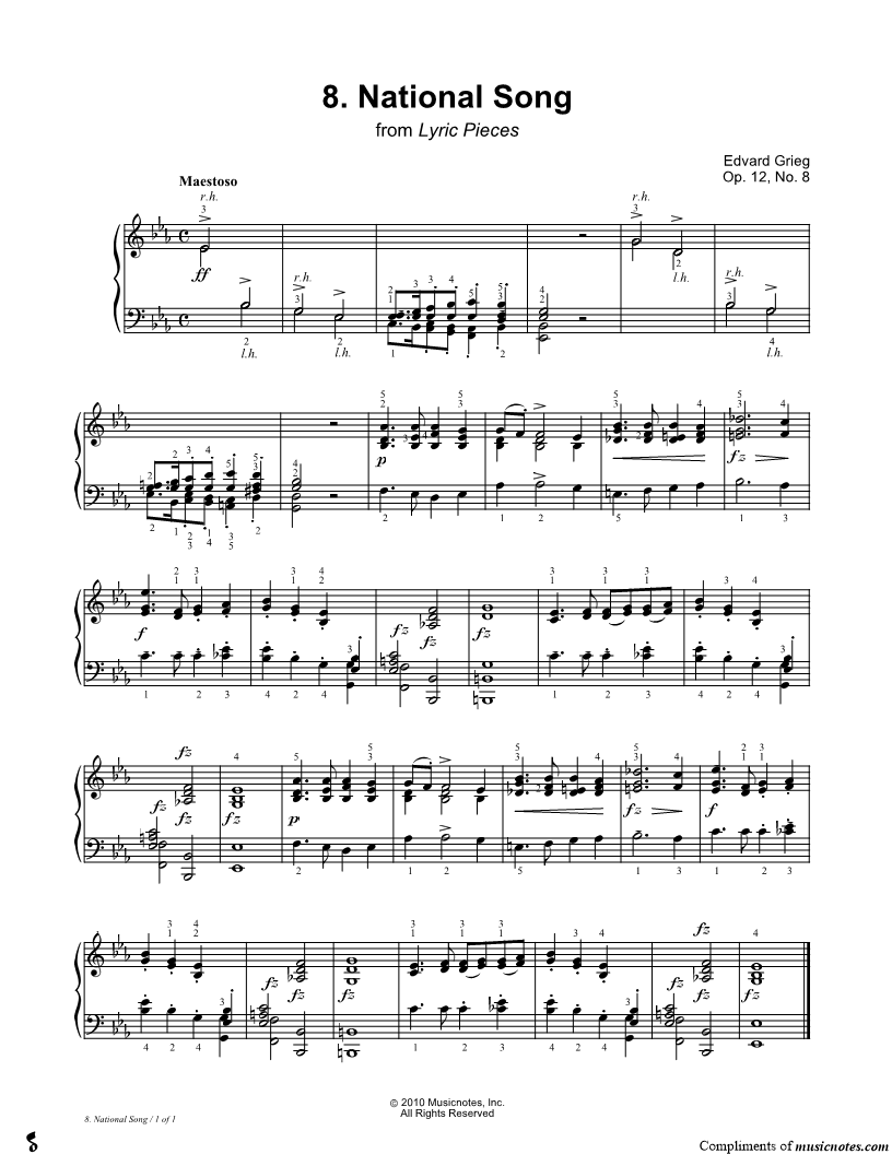 Lyric Pieces: Opus 12, No. 8. National Song |