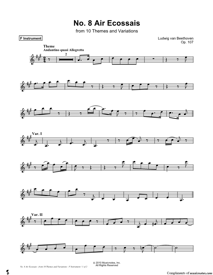 Op. 107, No. 8. Air Ecossais - F Instrument & Piano from 10 Themes and Variations