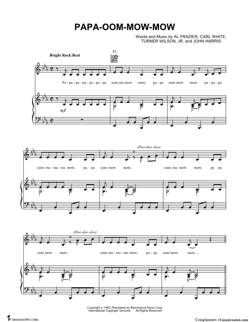 Papapapapapapa oom ma mow mow, papa oom mow mow, papapa oommamama mow, papa oom mow mow, oomma mow mow, papa oom mow mow, oommamamamow, papa oom mow mow. |