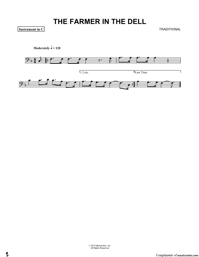 Bass Clef Instrument, range: C3-D4 (Bassoon, Cello, Trombone, Baritone Horn or Double Bass) | |