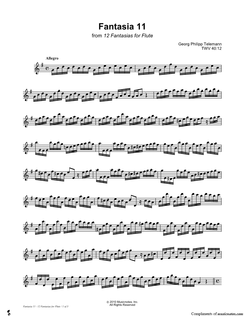12 Fantasias for Flute: 11. Fantasia in G Major |