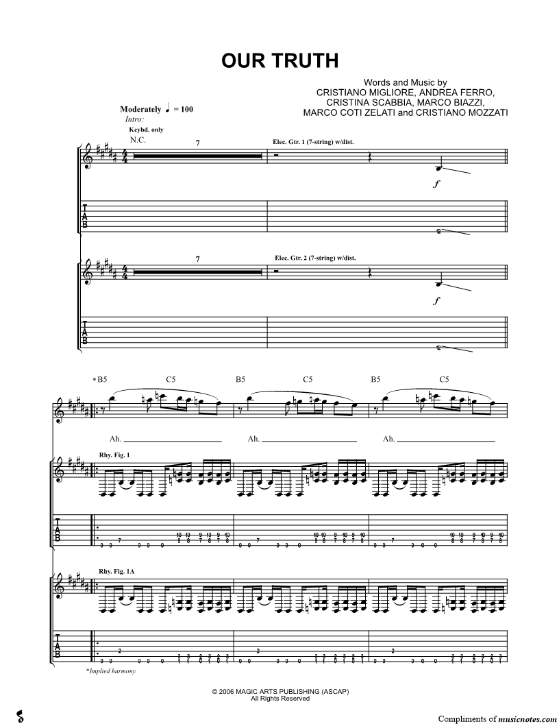Voice, range: C5-E6 Guitar 1 Guitar 2 Backup Vocals | |