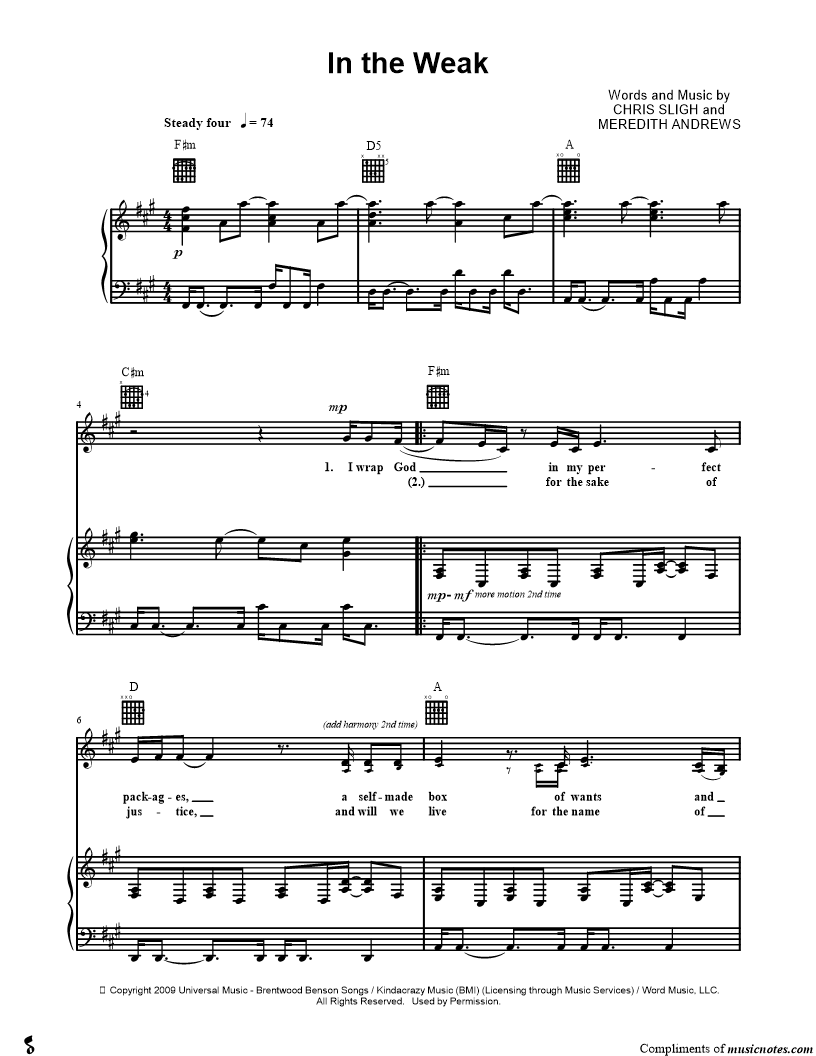 Musicnotes sells a wide variety of digital sheet music products including Singer Pros, Beginner Notes, Choral music, Piano Solos, Lead Sheets, Piano/Vocal/Guitar, Solo and Accompaniment, and fretted instrument tablature.