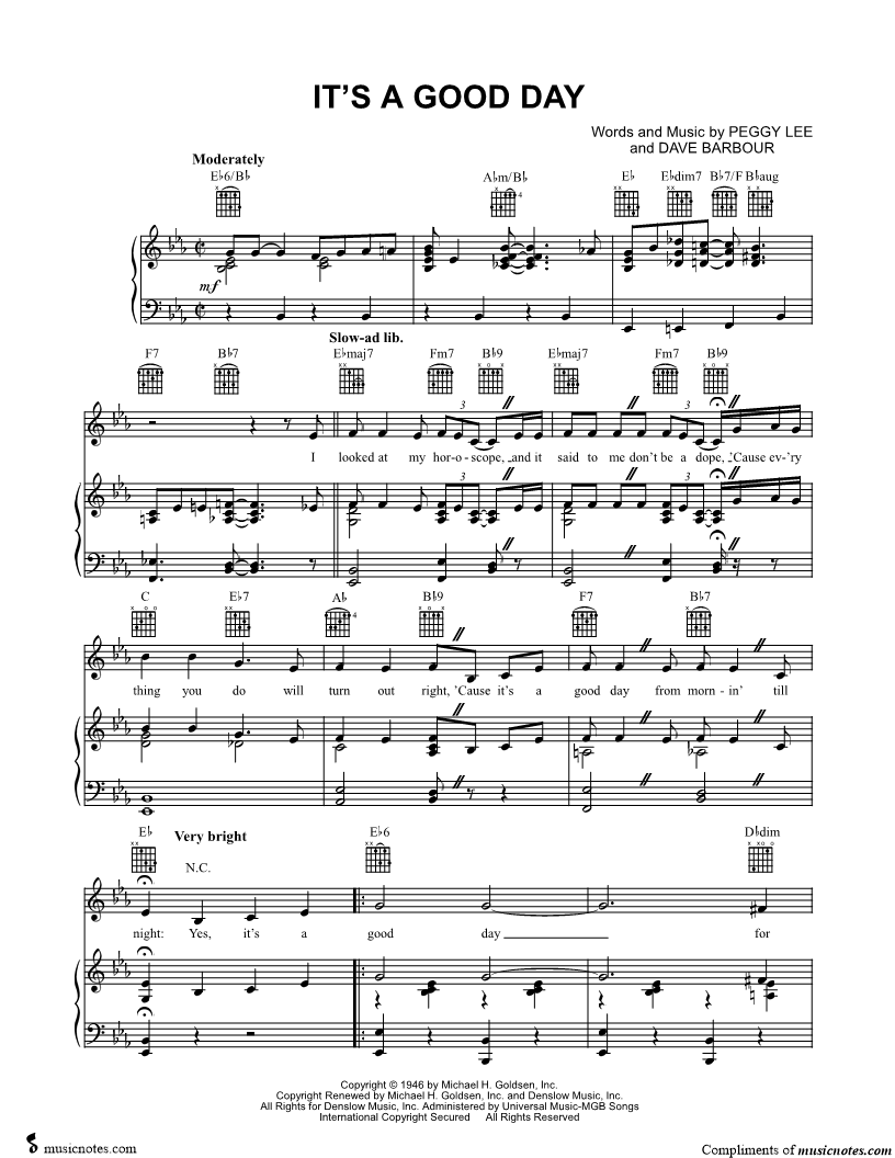 I looked at my horoscope and it said to me don't be a dope 'Cause ev'ry thing you do will turn out right, 'Cause it's a good day from mornin' till night Yes, it's a good day for singin' a song, |