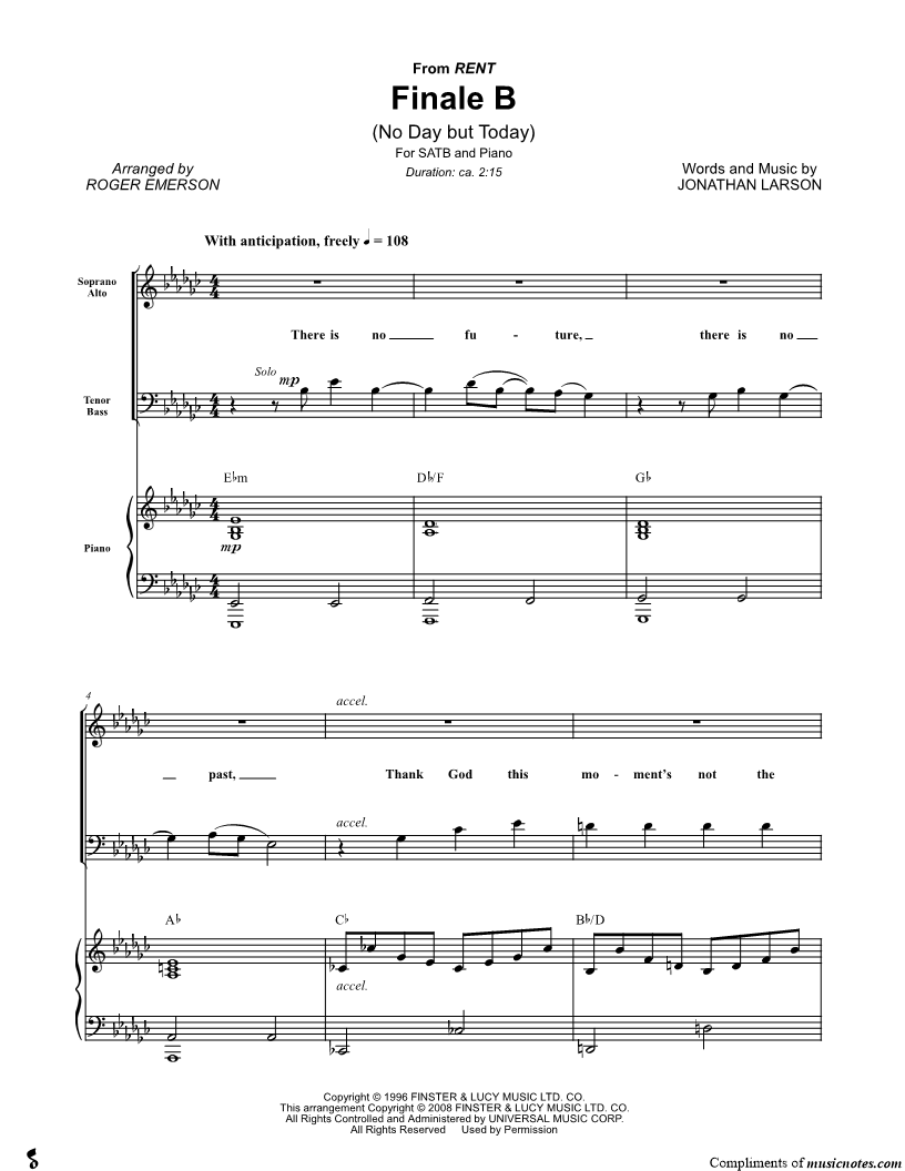 Finale B (No Day But Today) - SATB |