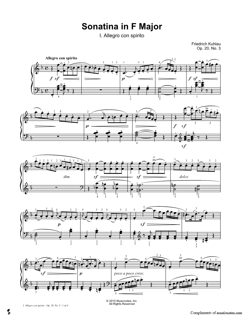 Sonatina in F Major, Opus 20, No. 3: I. Allegro con spirito |