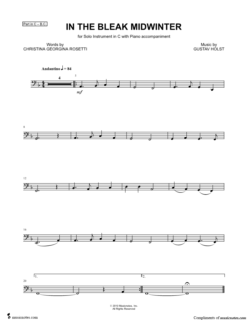 In the Bleak Midwinter - Bass Clef C Instrument |