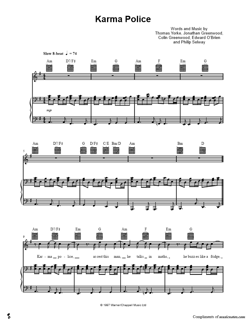 Karma police, arrest this man, he talks in maths, he buzzes like a fridge, he's like a detuned radio. |