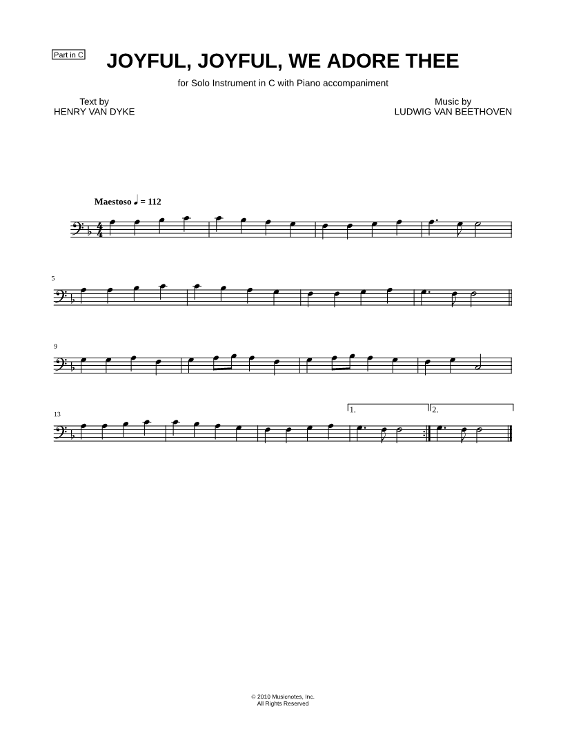 Joyful, Joyful, We Adore Thee - Bass Clef Instrument |