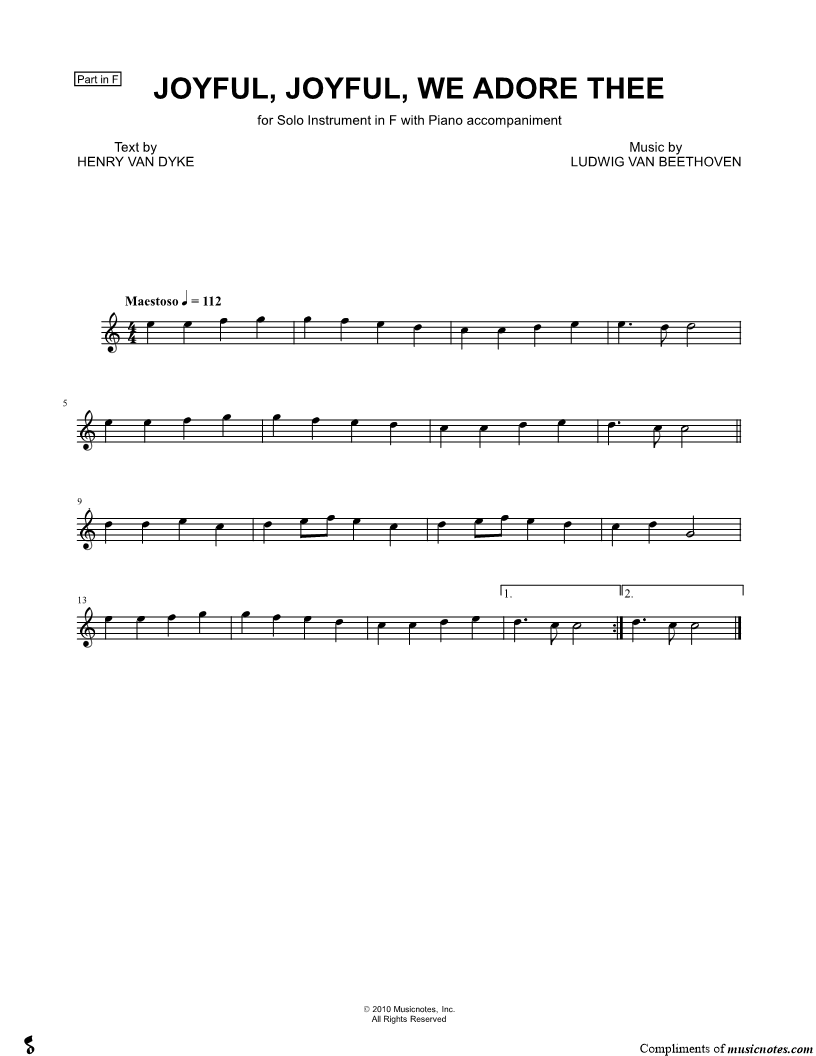 Joyful, Joyful, We Adore Thee - F Instrument |