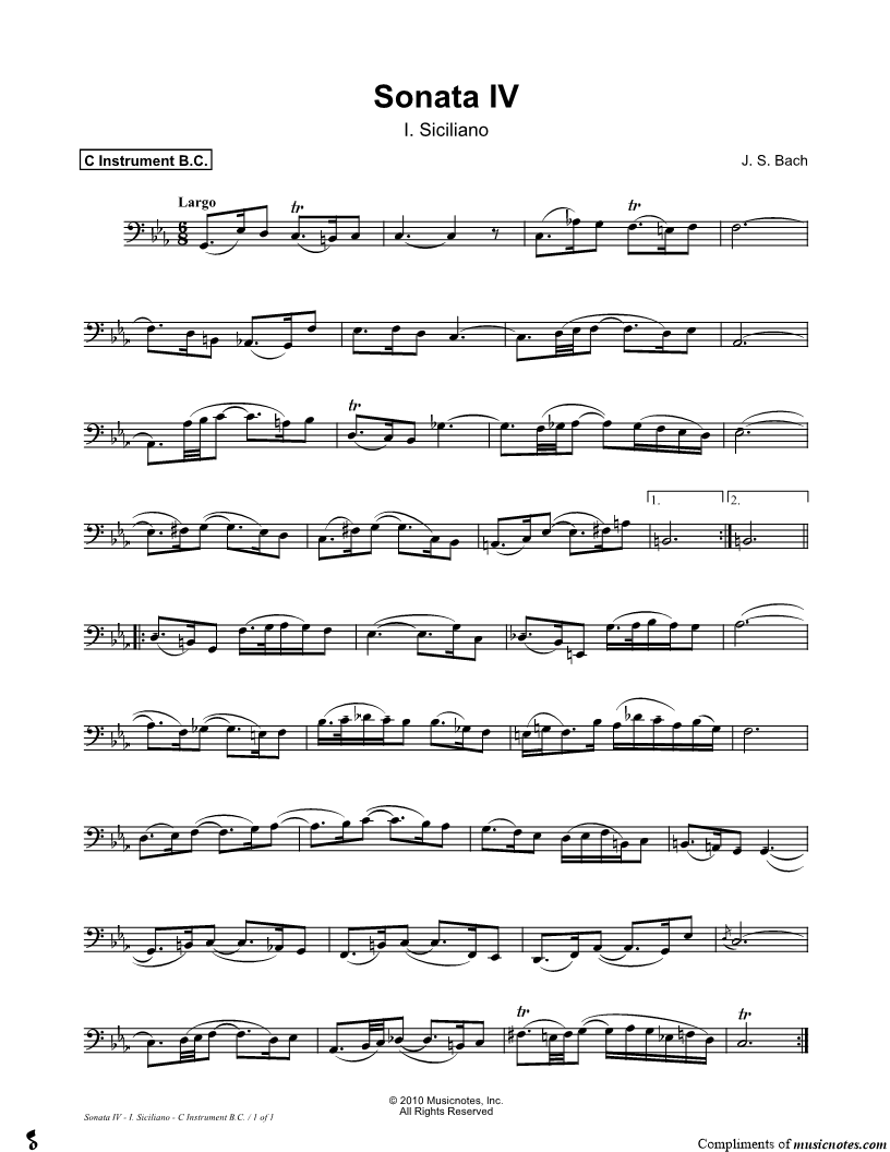 Sonata IV, BWV 1017: I. Siciliano - Bass Clef Instrument |