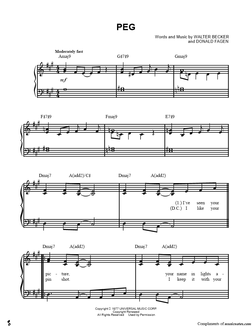 Steely Dan - Greatest Hits - Easy Piano |