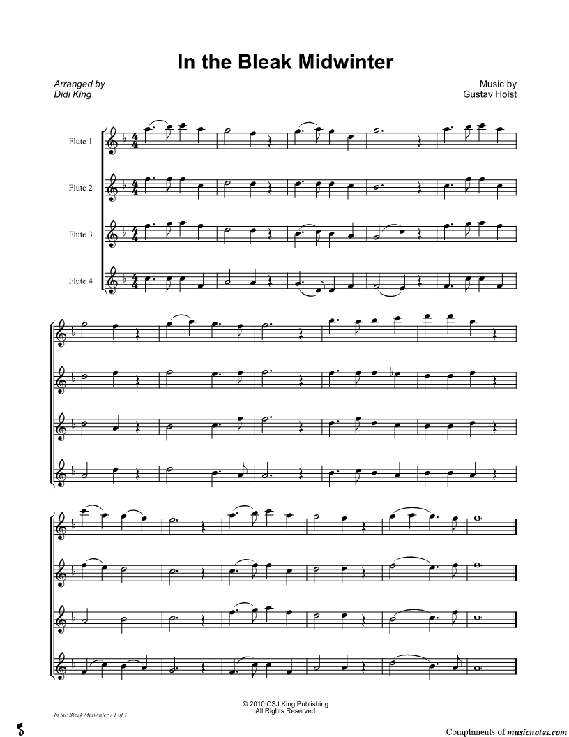 In the Bleak Midwinter - Score (Flute Quartet) |