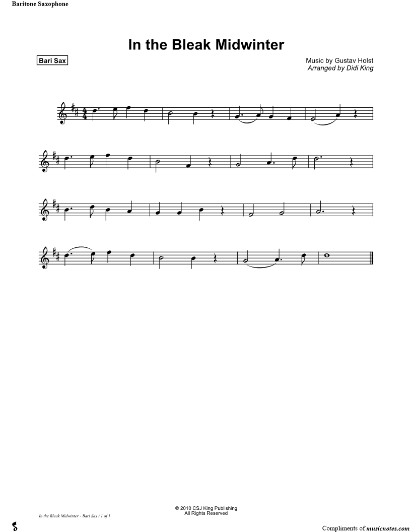 In the Bleak Midwinter - Baritone Saxophone Part |