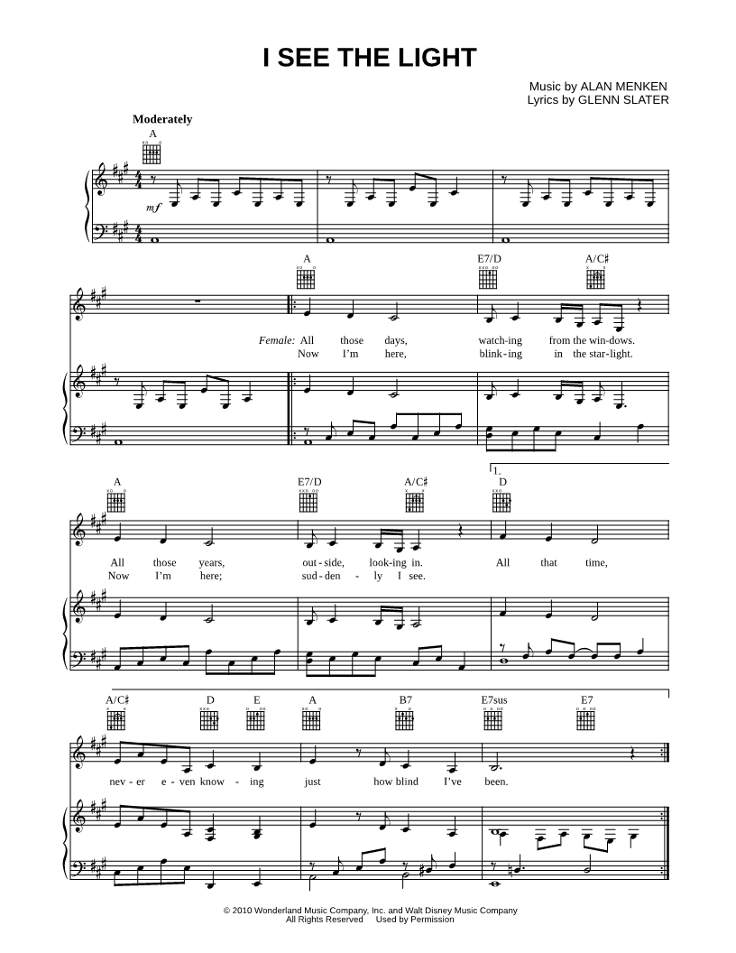 Collection: 7 Classic Disney Songs Arranged for Piano, Voice and Guitar