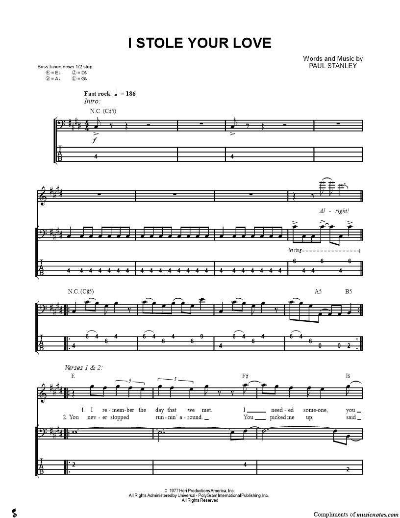 Bass Tab Bass/Vocal |