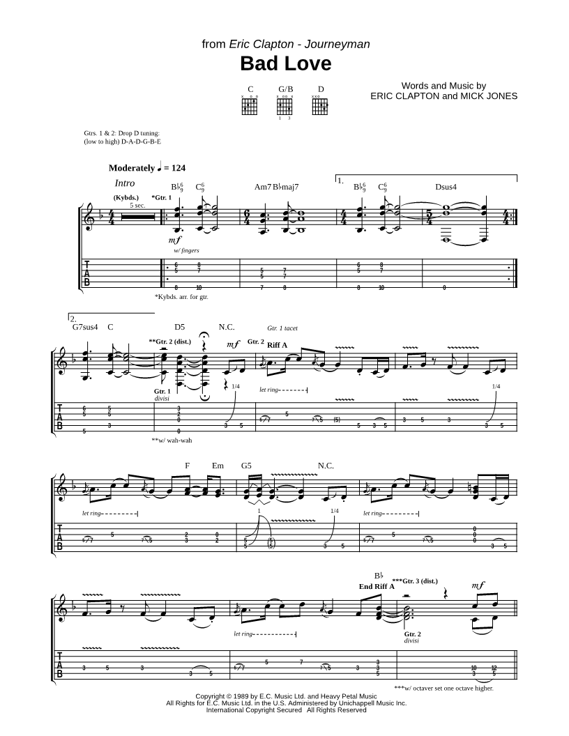 Guitar TAB Guitar/Vocal |